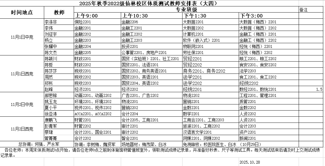 下一条:关于2025-2026学年仙林校区2022级、2023级学生进行 《国家学生体质健康标准》测试的通知