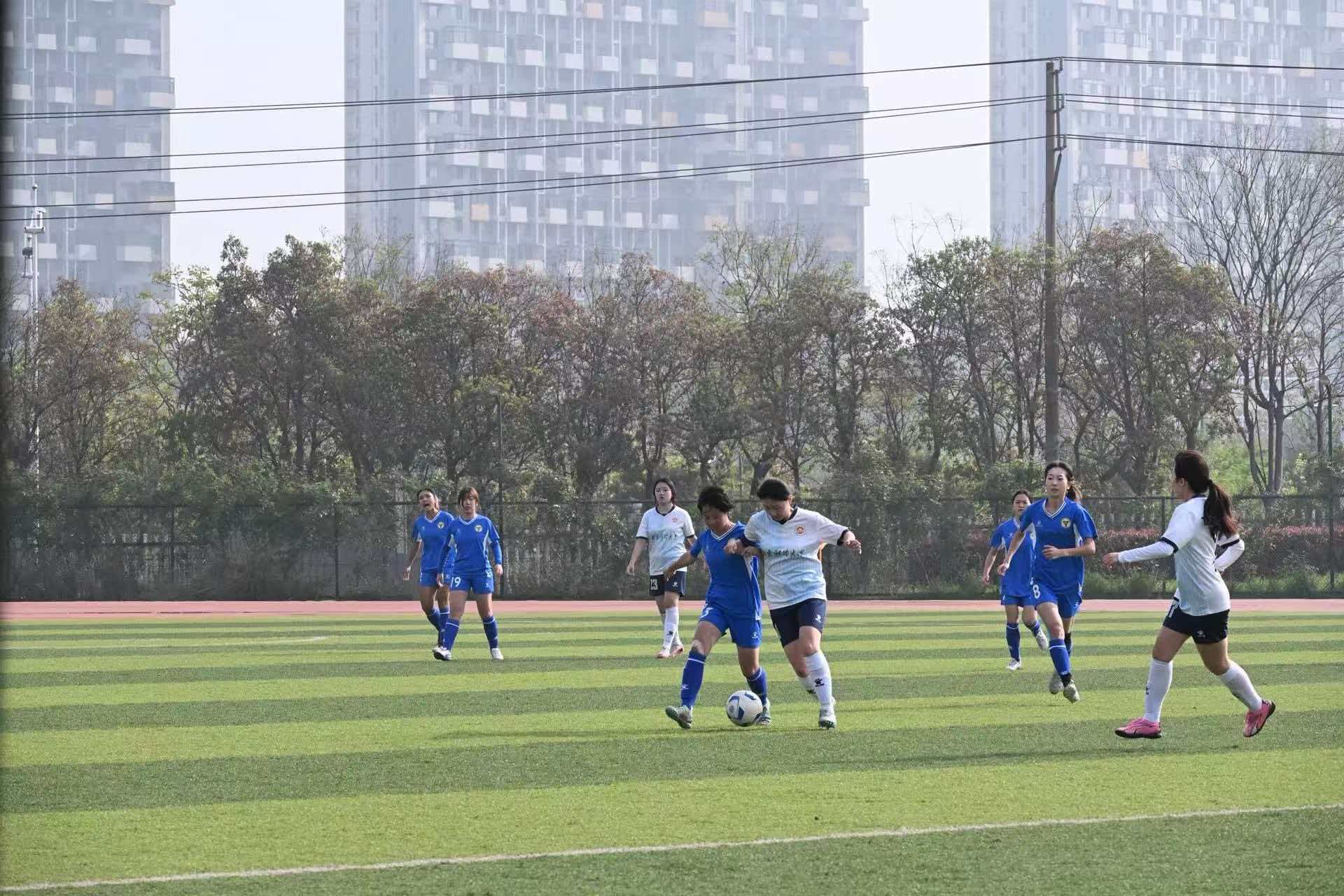 这份底气,源自她们日复一日的刻苦训练。在教练姚玉龙的悉心指导下,球队形成了“周中苦练、周末实战”的训练模式。每周一到周五,姑娘们在足球场上进行体能、战术和技术的系统训练,汗水浸透了球衣,磨破了球鞋,却从未有人喊苦喊累。她们反复练习传球、射门、防守等基本技术,针对不同对手制定战术方案,不断提升团队配合能力。周末则主动邀请周边高校女足队伍进行友谊赛,以赛代练,在实战中打磨技战术,积累比赛经验。前国家队女足队员管菁菁老师担任助理教练,将专业的技巧和宝贵的经验倾囊相授,帮助队员们快速成长。在这支队伍的成长路上,离不开学校的大力支持和教练团队的默默付出。体育部副主任李树梅作为领队,全程陪伴球队征战,为姑娘们协调训练资源、解决后勤保障问题,成为她们最坚实的后盾。